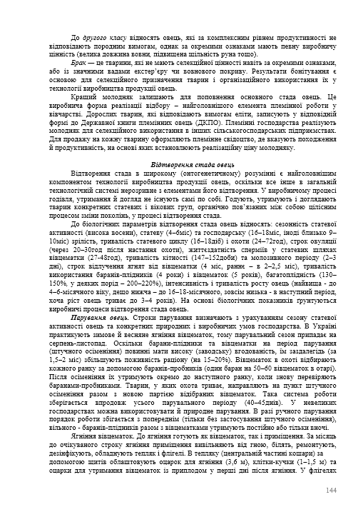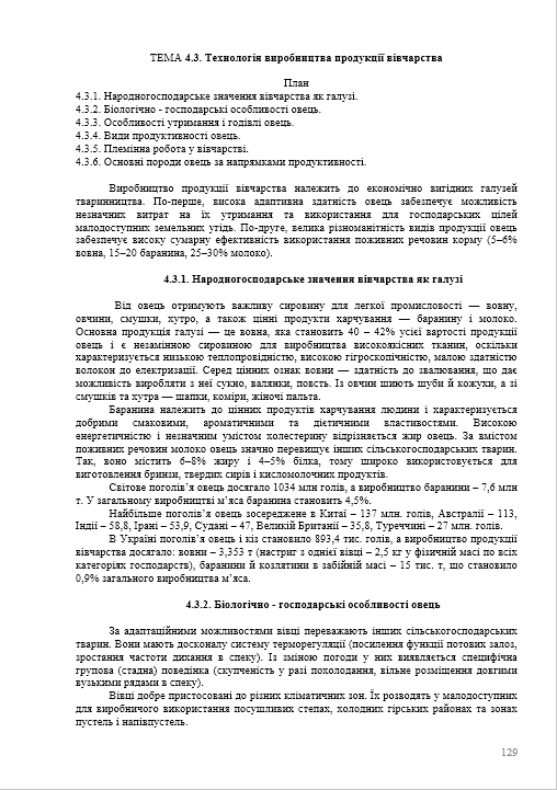 Технологія виробництва продукції вівчарства