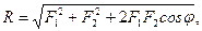 де φ – кут між лініями дії сил