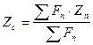 Координати центра системи n паралельних сил визначаються за формулами: