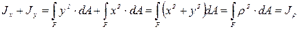 Уявимо плоску фігуру, моменти інерції якої відносно осей координат Jx і Jу, а полярний момент інерції відносно початку координат Jp. Як вже було встановлено, Jx + Jy =Jp.