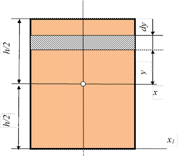 Для цього на відстані у від осі х1 виділимо елементарну смужку шириною bх і висотою dу, паралельну основі.