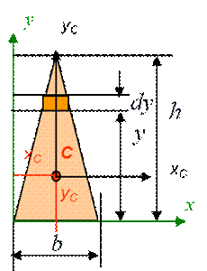 12. За якими формулами визначаються осьові моменти інерції трикутника ?