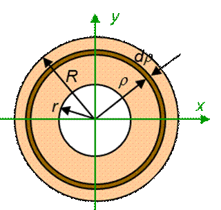 13. За якими формулами визначаються осьові моменти інерції круга і кільця ?