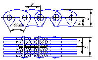 ланцюга, застосовують багаторядні втулково-роликові